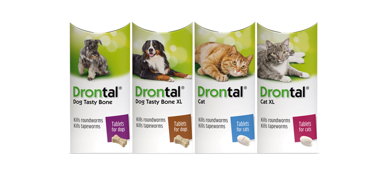 Drontal cat tablets contain two ingredients which work differently to ensure both round and tapeworms are treated, one of these ingredients starts treating susceptible worms very rapidly.