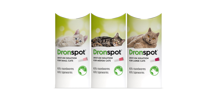 Dronspot is made by the same trusted manufacturer as Drontal tablets and is just as effective as a worming treatment. The difference with Dronspot is the product is absorbed through the skin into the bloodstream, where it travels around the body and into the gut, where many of these worms take up residence. As a spot on wormer, it also means you no longer have to coax your cat to take a tablet, if you think that may be a problem.