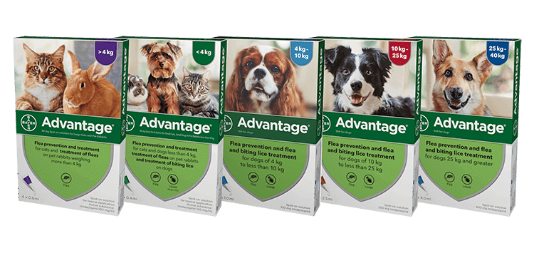 Advantage for dogs is a highly effective easy-to-apply spot-on flea treatment. It kills through contact, meaning your dog doesn’t have to be bitten for it to work. Fast-acting and long-lasting for up to four weeks, it protects your dog and home from infestation. Used regularly, at the right times, Advantage will keep your dog flea free, for good.